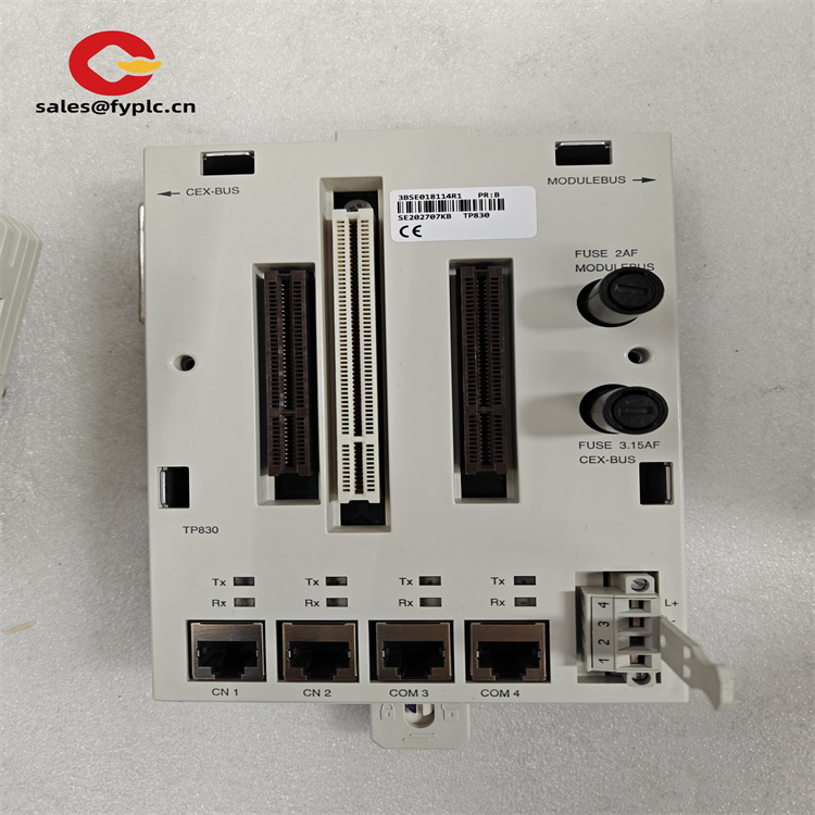 支持 多协议并行通信,可同时连接 Profibus DP 现场总线 和 Modbus TCP 以太网,兼容第三方设备(如西门子 PLC、罗克韦尔变频器)。通过 CEX 总线 可扩展 12 个通信模块,实现与 S800 I/O 系统 的无缝集成,适应复杂工业网络架构。